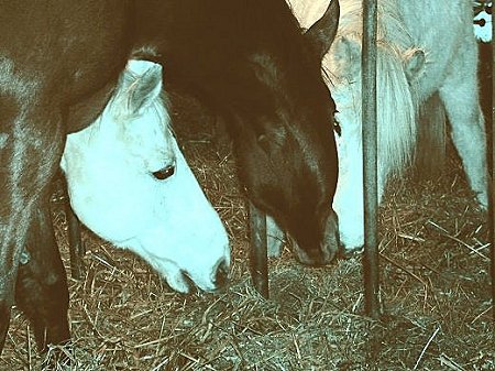 Wenn sich das Pferd mit den Gruppenmitgliedern beschäftigt und nicht nur alleine in einer Ecke herumsteht, ist es erfolgreich in die Gruppe integriert.